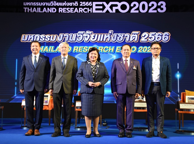 ในงาน “มหกรรมงานวิจัยแห่งชาติ 2566 : Thailand Research Expo 2023” ซึ่งจัดโดย สำนักงานการวิจัยแห่งชาติ (วช.) กระทรวงการอุดมศึกษา วิทยาศาสตร์ วิจัยและนวัตกรรม ได้ต่อยอดความรู้ความเข้าใจแก่สังคมด้วยการจัดเวทีเสวนาภายใต้หัวข้อ “การยกระดับเศรษฐกิจสร้างสรรค์ : ชุมชนเข้มแข็งและมาตรฐานผลิตภัณฑ์” ณ ห้องเวิลด์บอลรูม ชั้น 23 โรงแรมเซ็นทาราแกรนด์ และบางกอกคอนเวนชันเซ็นเตอร์ เซ็นทรัลเวิลด์ เมื่อวันที่ 9 สิงหาคม 2566 โดยมี ดร.วิภารัตน์ ดีอ่อง ผู้อำนวยการสำนักงานการวิจัยแห่งชาติ พร้อมด้วย ดร.กิตติ สัจจาวัฒนา ผู้อำนวยการหน่วยบริหารและจัดการทุนด้านการพัฒนาระดับพื้นที่ (บพท.), รศ.ดร.สมหมาย ผิวสอาด ประธานที่ประชุมอธิการบดีมหาวิทยาลัยเทคโนโลยีราชมงคล และ นายวชิระ แก้วกอ รองผู้อำนวยการสำนักงานส่งเสริมวิสาหกิจขนาดกลางและขนาดย่อม (สสว.) ร่วมเวทีเสวนาฯ ดำเนินรายการโดย รศ.ดร.พีรเดช ทองอำไพ จากสถาบันคลังสมองของชาติ